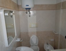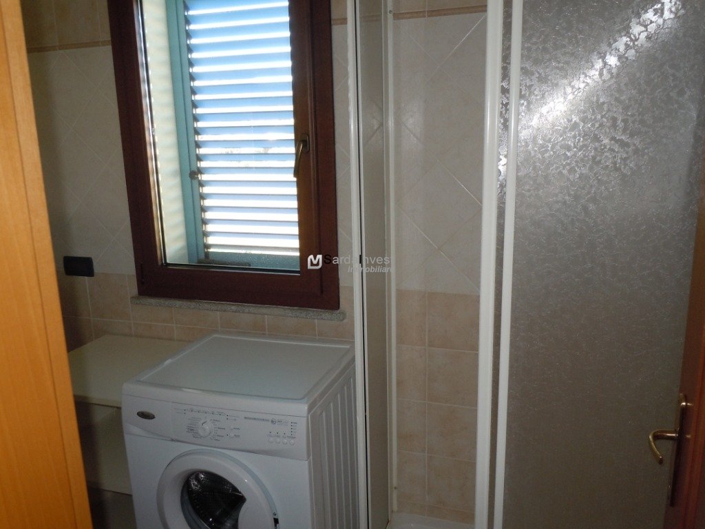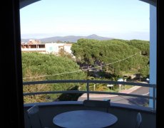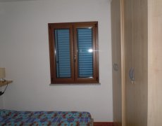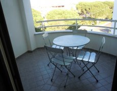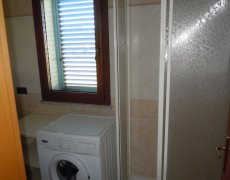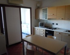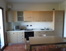 disposta su unico lato, disimpegno, camera da letto, bagno con doccia e lavatrice, veranda coperta sempre ombreggiata nella quale si può conodamente mangiare anche in sei persone. L'appartamento è climatizzato.