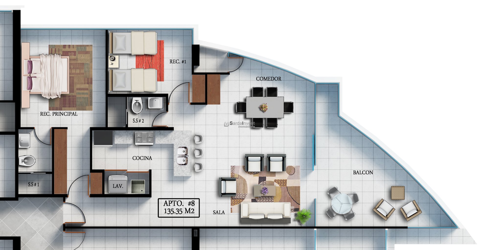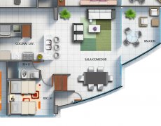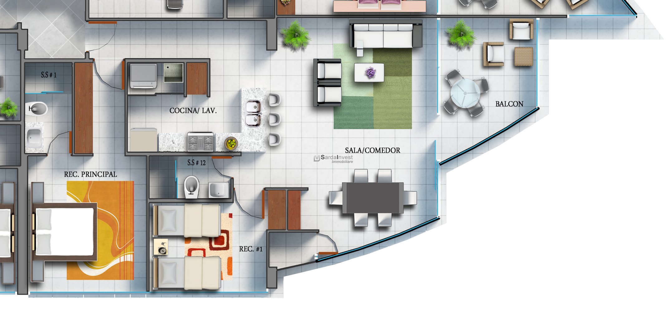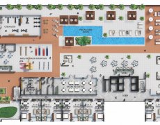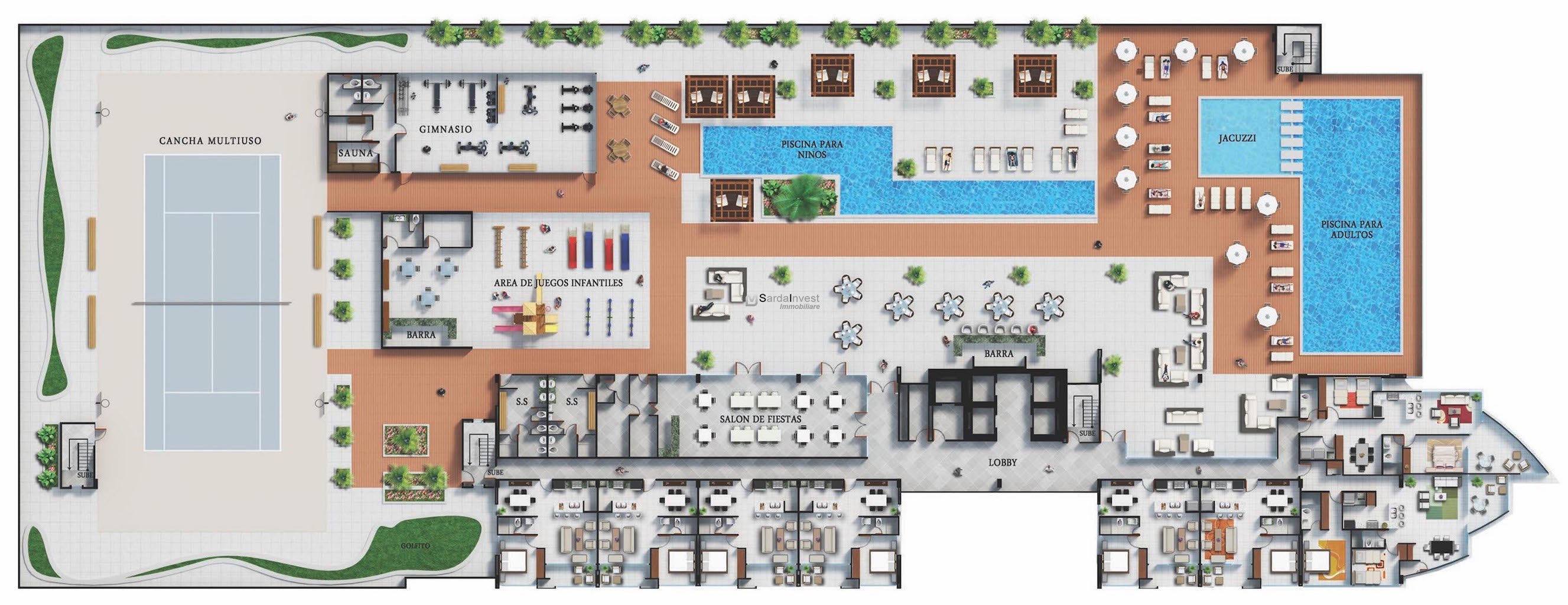 - Area sociale al terzo livello composta da tanto spazio attrezzato multiuso, dove si praticherà basket, pallavolo e tennis, terrazza aperta, area bar, piano prendisole, , gazebo, palestra, sauna, sala giochi per bambini, salone delle feste, piscina, per bambini e piscina infinity.