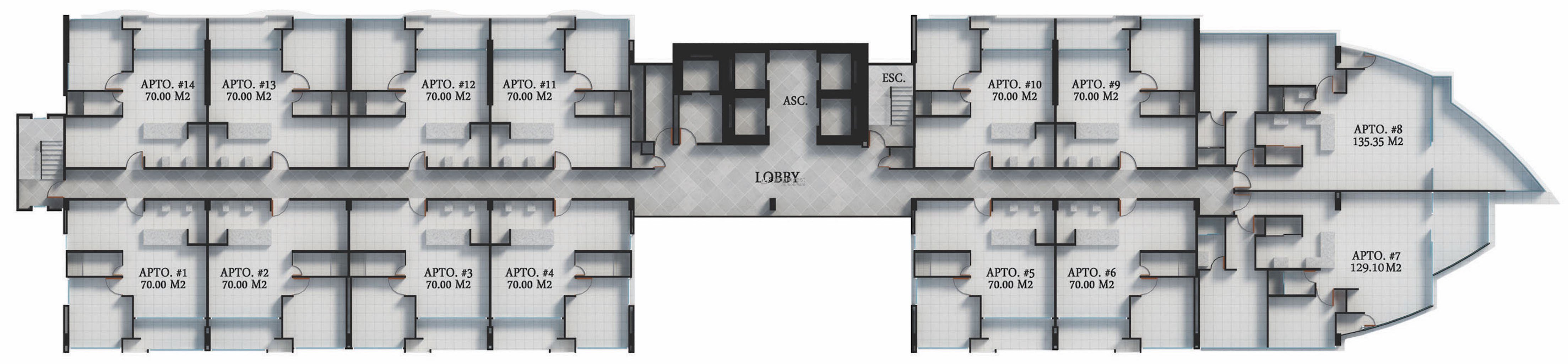 - 1 o 2 camere da letto (tutti gli appartamenti di 70 mq si possono unificare).