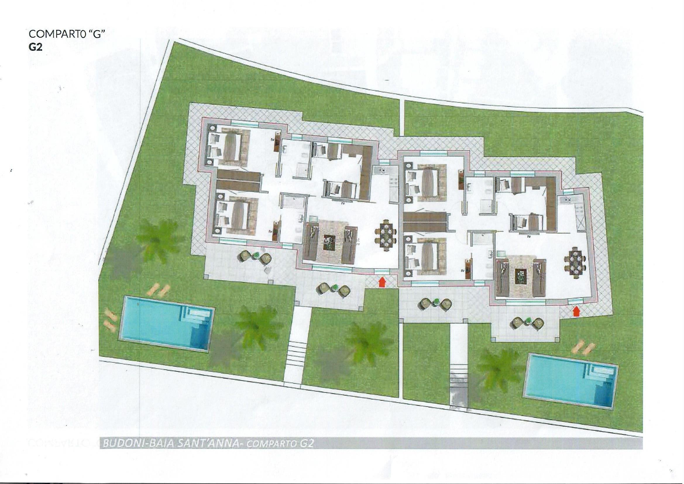 Luminosa villetta bifamiliare semindipendente con ampio open-space interamente finestrato composto da sala da pranzo e area relax. Zona notte costituita da 3 camere matrimoniali e due graziosi bagni con doccia. L’immobile è dotato di grandi porte finestre con doppio vetro e infissi in PVC che lasciano filtrare ampiamente la luce. All’esterno completano la casa un vasto giardino privato con piscina da 18 metri e una spaziosa veranda panoramica con vista sul mare e sull'isola di Tavolara.