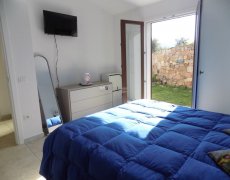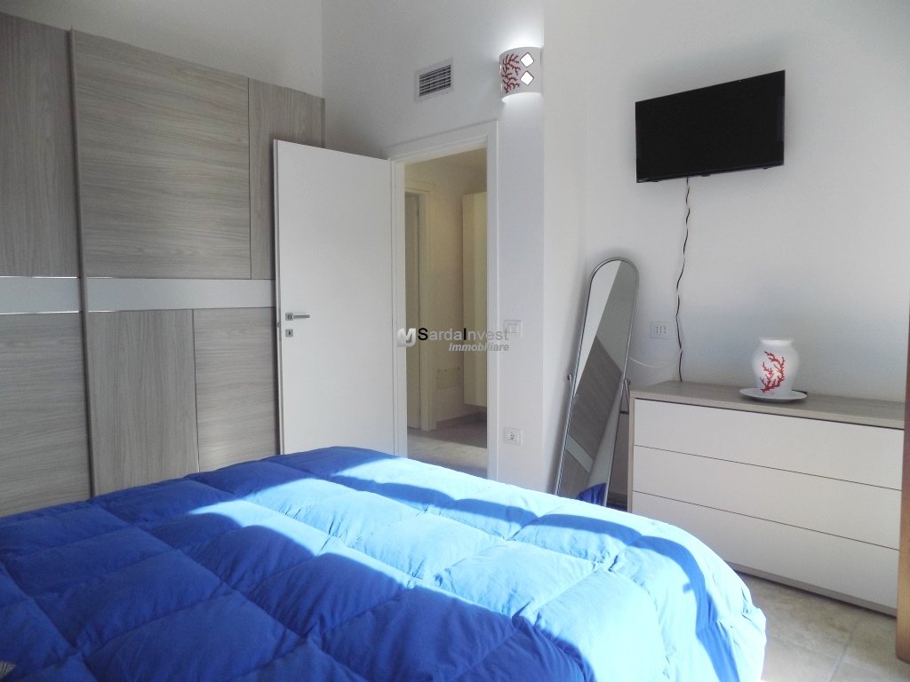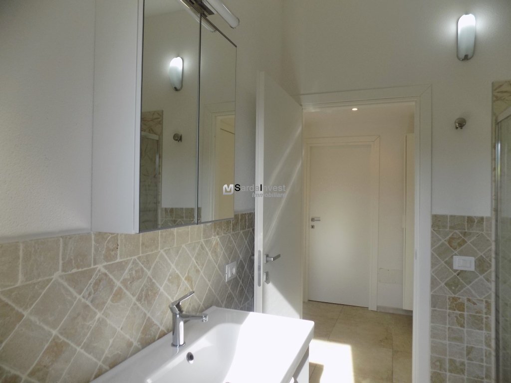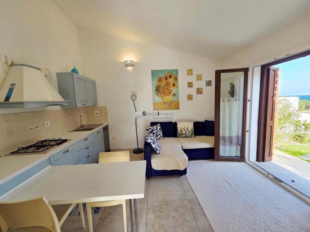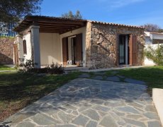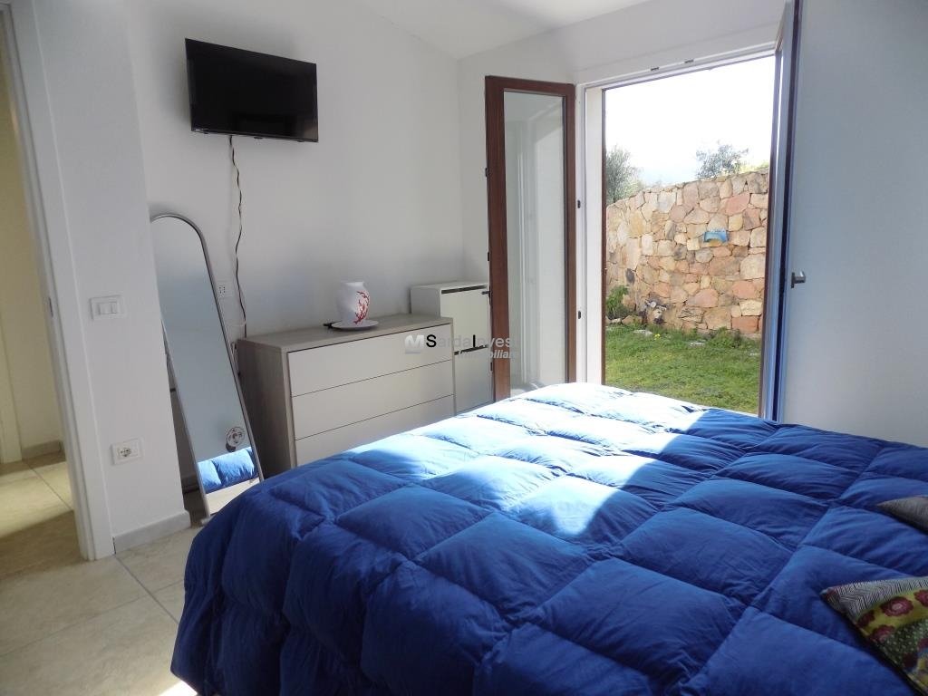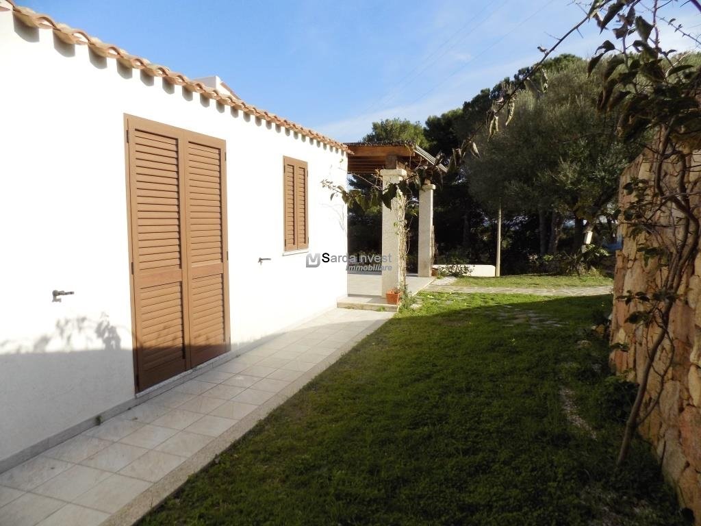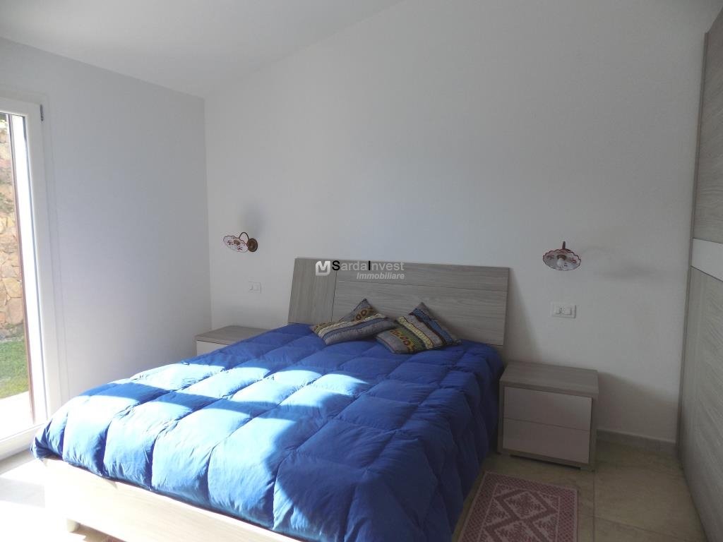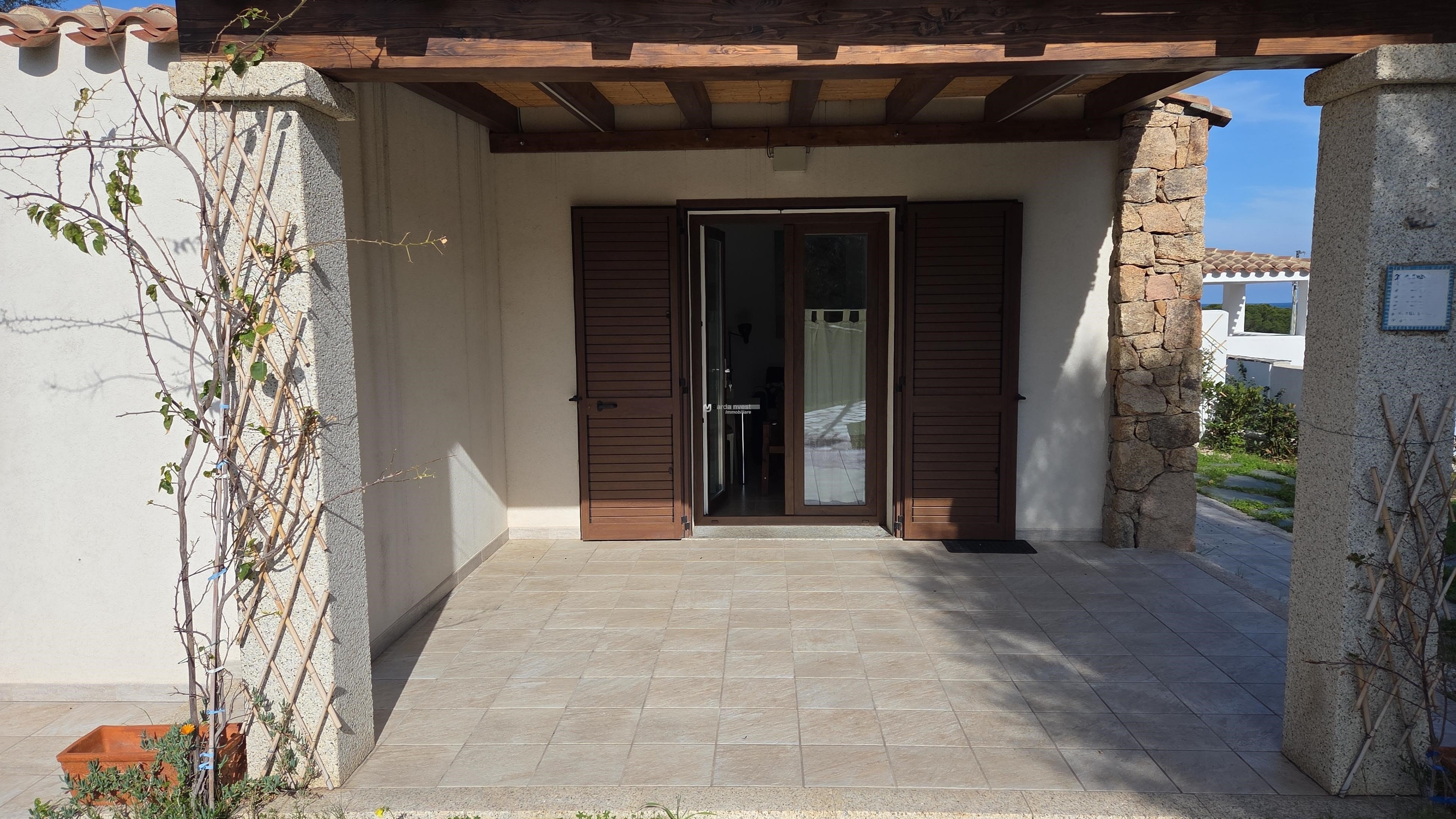 Baia Sant'Anna. In contesto residenziale, tranquillo e ben curato, a breve distanza dal mare, villetta con vista mare, di tipologia trilocale, disposta su livello unico al piano terra, con comodi spazi abitativi e giardino privato con posto auto interno. Gli ambienti comprendono: ingresso dalla veranda coperta nell'ampio soggiorno con zona cottura, disimpegno, una camera matrimoniale , una seconda camera doppia/matrimoniale, entrambe con porta finestra e bagno spazioso. L'immobile è completamente climatizzato, arredato e corredato. Esternamente è dotato di doccia esterna , riserva idrica e vani per ricoveri vari. La proprietà è delimitata da muretto in pietra sarda. Per informazioni contattare il Signor Manca Pierluigi al seguente numero: 339-4842476.