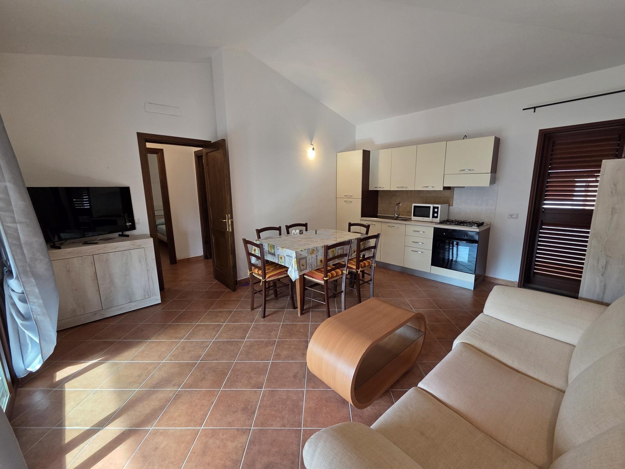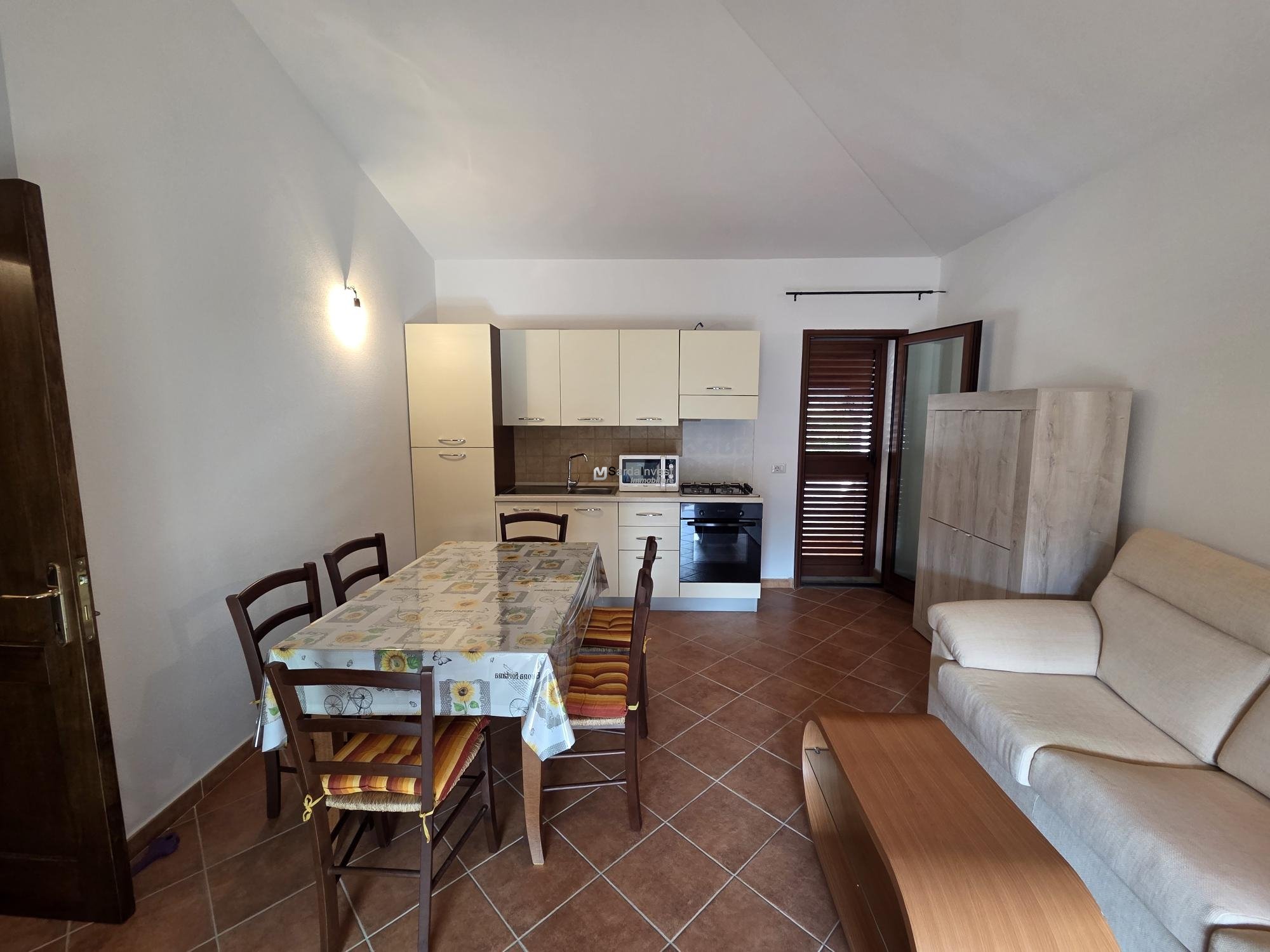 Torpè. In complesso residenziale di recente costruzione, all'ingresso di Torpè, appartamento trilocale su livello unico completamente arredato con ampi spazi abitativi, comodo ai servizi e alle vie di comunicazione. Gli interni sono così composti: ingresso dalla veranda coperta nel grande soggiorno con zona cottura a parete su unico lato, verandina coperta, disimpegno, una camera da letto matrimoniale e una doppia che di fatto può essere anche matrimoniale, bagno con doccia. L'immobile è dotato della predisposizione per l'aria condizionata con pompa di calore e della riserva idrica. L'immobile è perfetto e non necessita di alcuna manutenzione.